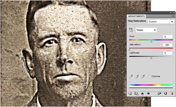 2. Checked colorize & set Saturation to zero without adjusting Hue or Lightness