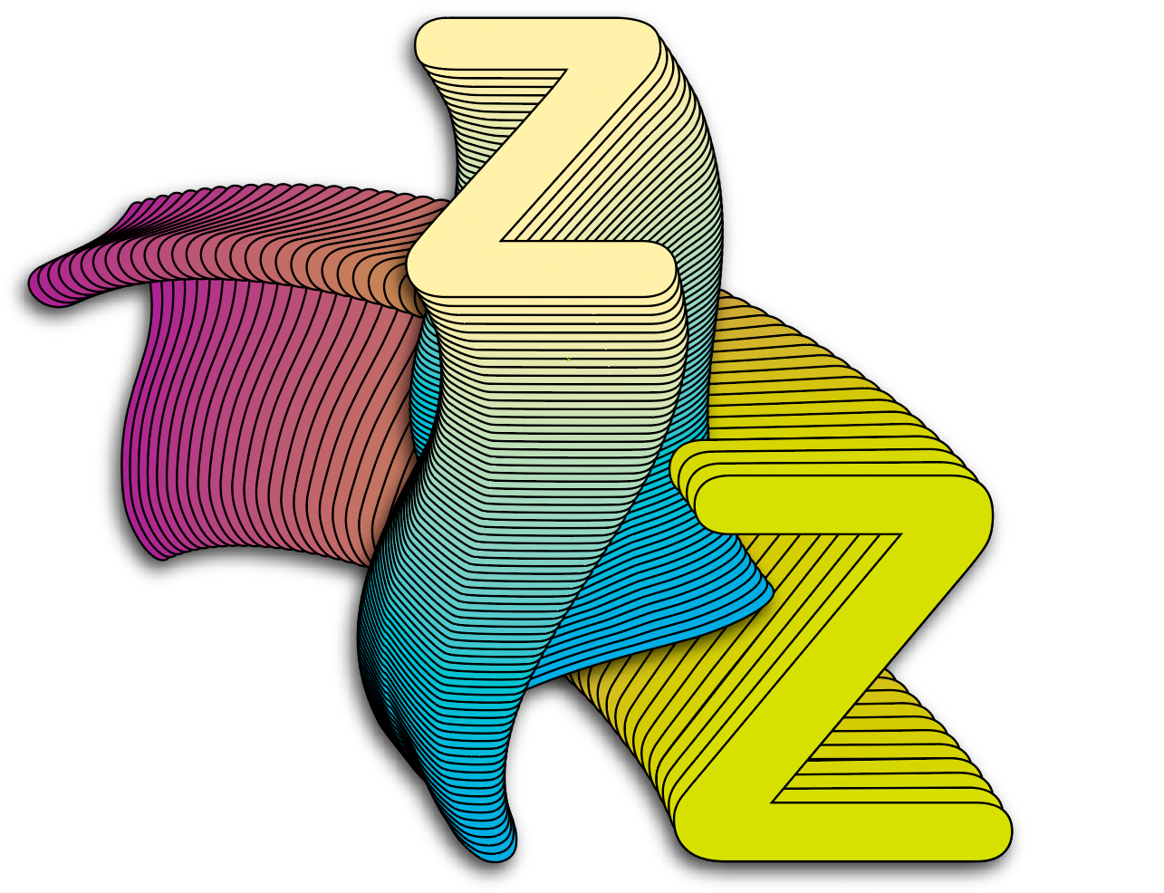 He begins by applying a “Fish” warp to the back partner of the central Z in the puzzle, resulting in this effect when it incorporates with the existing object blend: