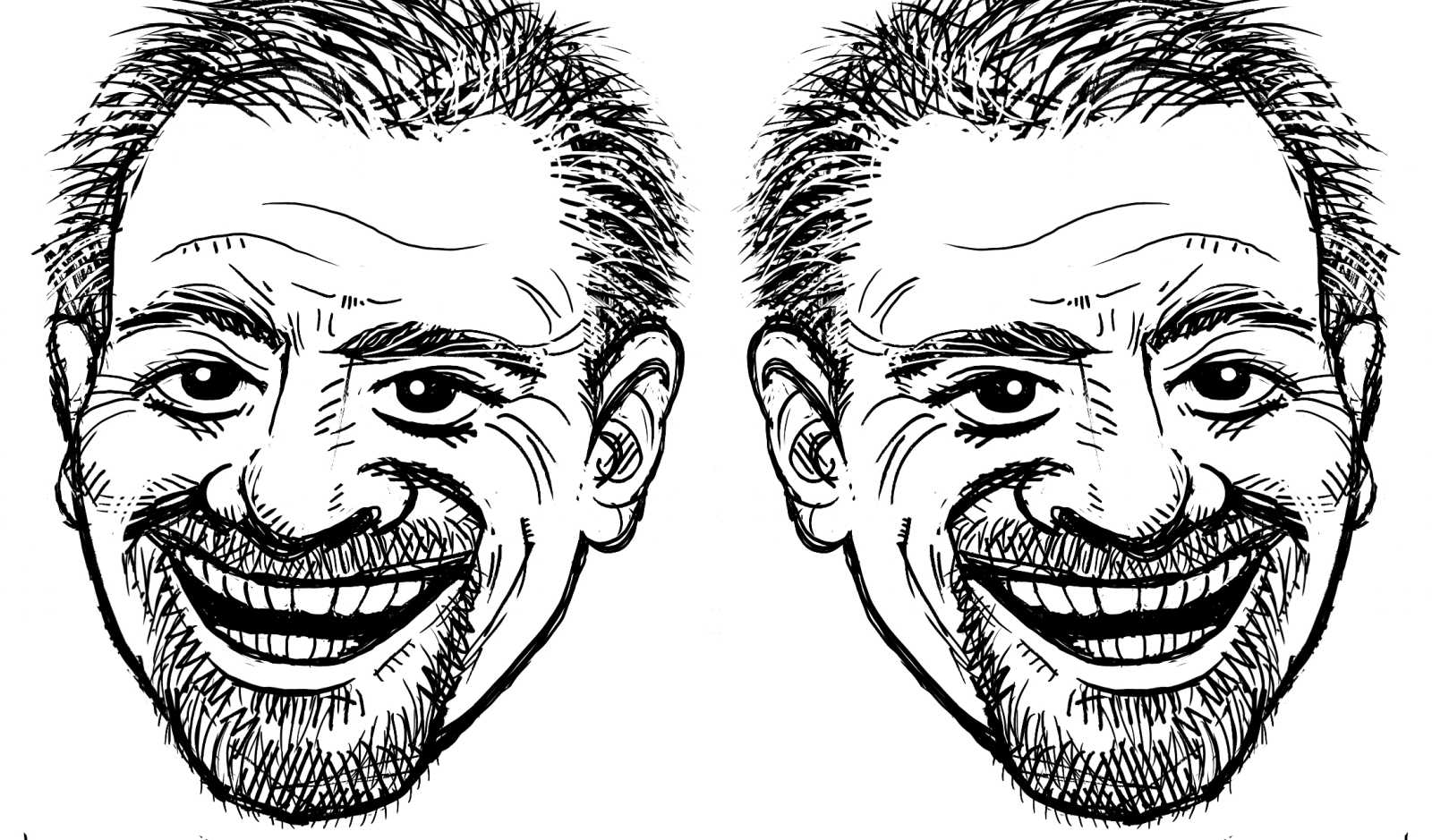And, flipping the view allows him to see that his signature smile needs a bit of balancing with the Liquify tool.