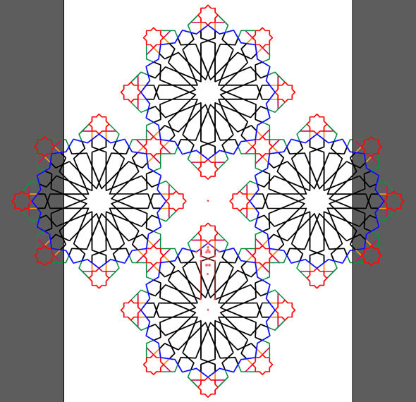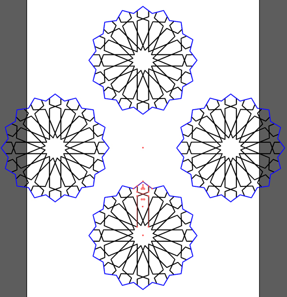 Then you’ll discover how rotate elements around an invisible “ghost” point for precision placing of copies to make the 16-point star element. And then makes copies of those copies to replicate the pattern in the window. You can where our humble unsuspecting starter element is still selected below. The rest is all dynamic effect, which might be slightly easier than what the unknown 19th century Tunisian artist used.