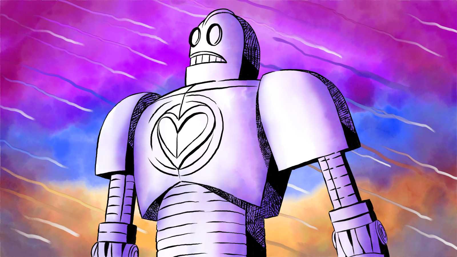 By adding a mask to the background layer (which was created with watercolor brushes in Fresco), using all the various and fairly useful tools that Fresco has to offer, our hero can once again face the messy missiles that previously marred his outer shell: