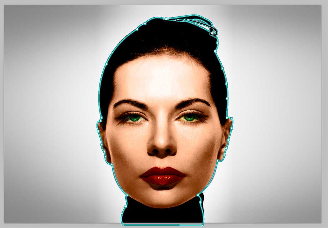 The saga begins with this model from Dreamstime.com, around which Deke has drawn a clipping path in Photoshop in order to separate her from her background.