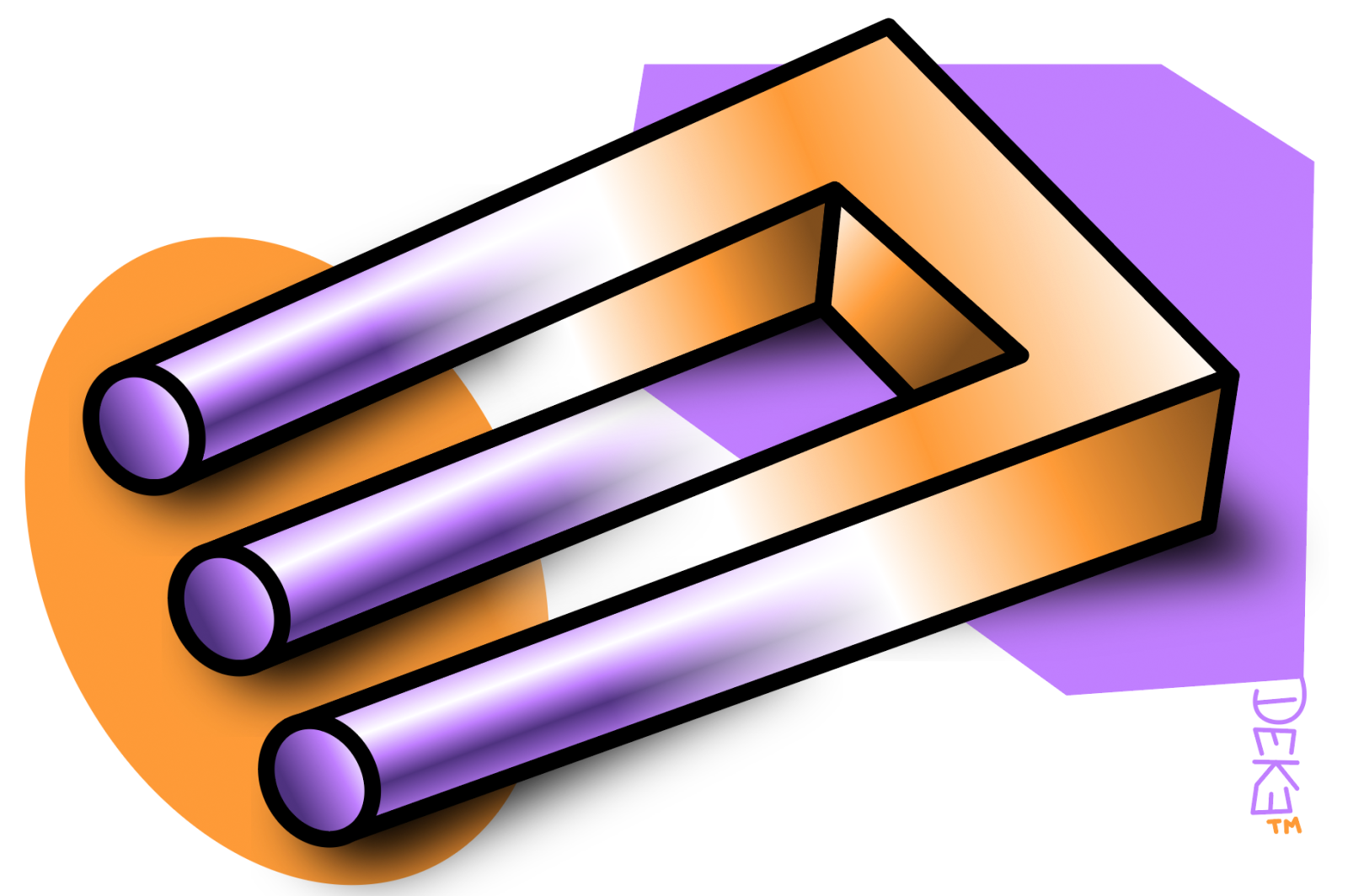 Specifically, he enhances last week’s Devil’s tuning fork illusion by applying gradients that give each “tine” a cylindrical appearance. While the “root” remains flat-sided. (Yes, I did just have to Google “parts of a fork.”)