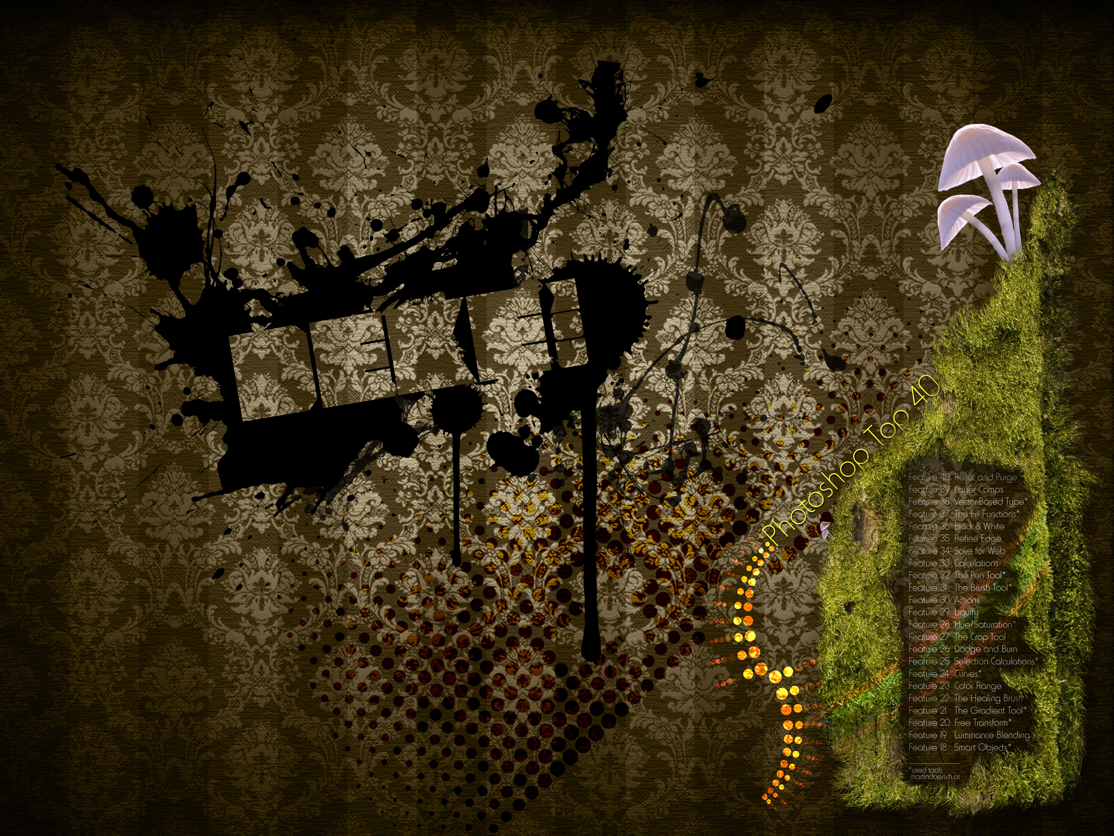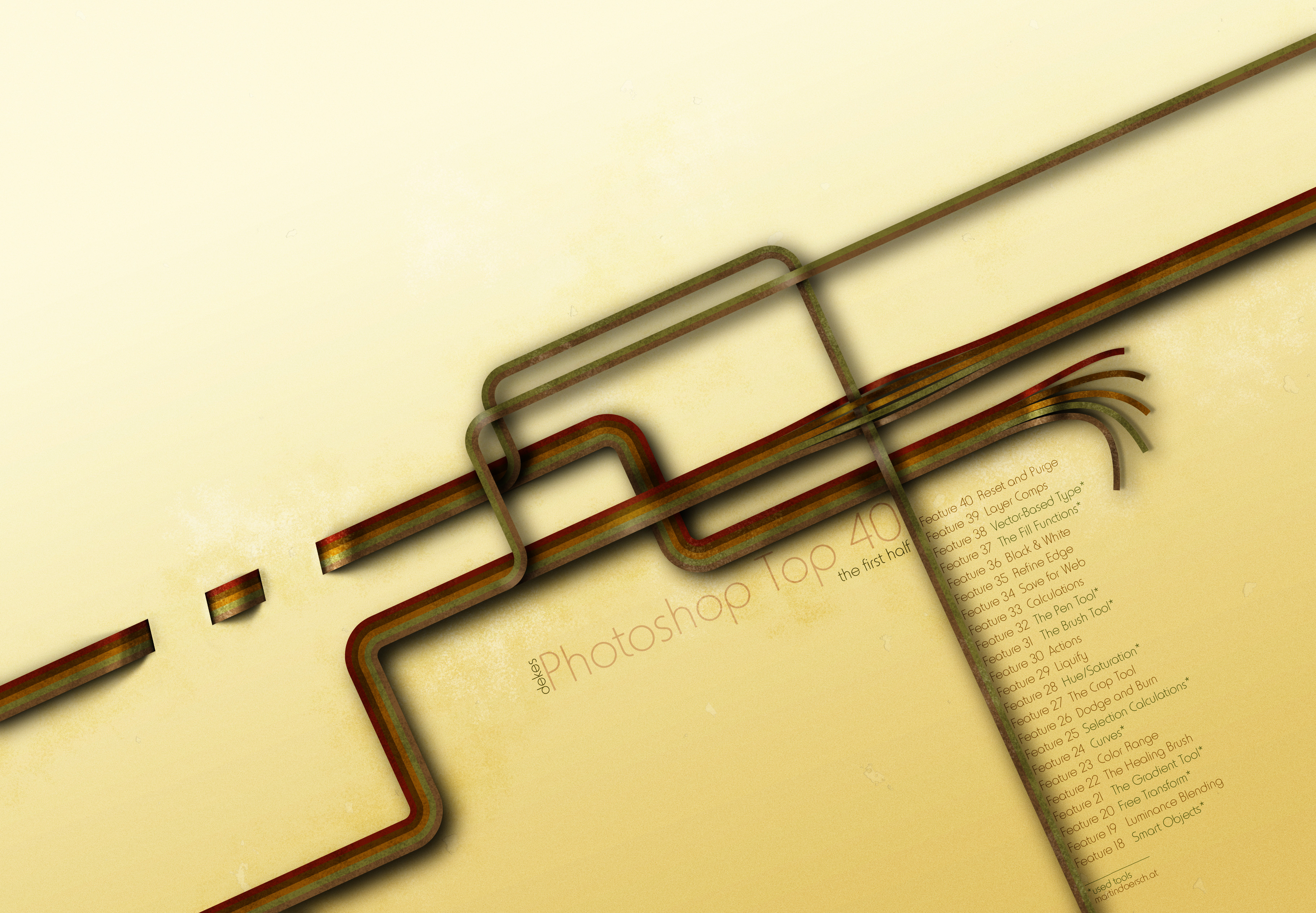 Create for us a magnificent piece of artwork that celebrates your favorite features of Photoshop. But you must do so using not fewer than three of the Top 40 Features I’ve posted so far. (Note that you’ll need to be a member of dekeOnline to participate so that you can post your artwork and include comments.)
