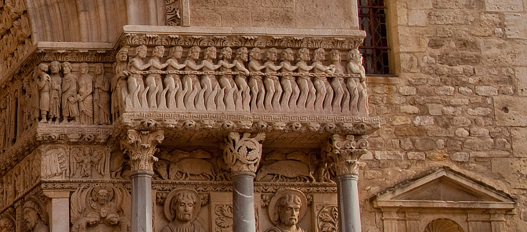 In addition to the ancient Roman architecture, Arles also contains more than its fair share of Medieval junk. Like the Church of Saint Trophime. One site calls it “one of the fine achievements of Provençal Romanesque architecture.” 12th-century churches don’t do much for me, but the building’s façade is something to behold. The portal is especially entertaining. The left side shows the righteous marching into the welcoming arms of God. The right side shows the damned marching into the equally welcoming arms of Beelzebub. Click the image below to see the side I prefer. Ooh, toasty!