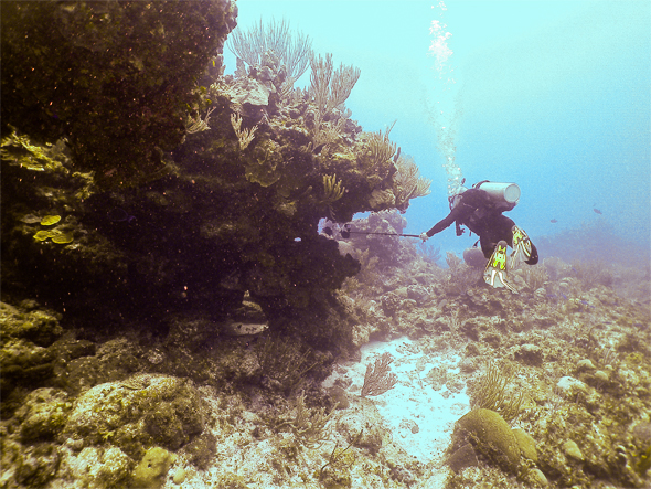 Why so short and sweet this week, Colleen? Well, Deke and I have hauled all our progeny to Cayman Brac for a scuba-diving spring break this week. And both my surface time and bandwidth are limited. But in celebration of Deke’s new course and to prove to you dekeOphiles that he never stops working, even underwater, here are some photos of Deke with his nose (and GoPro) to the grindstone.