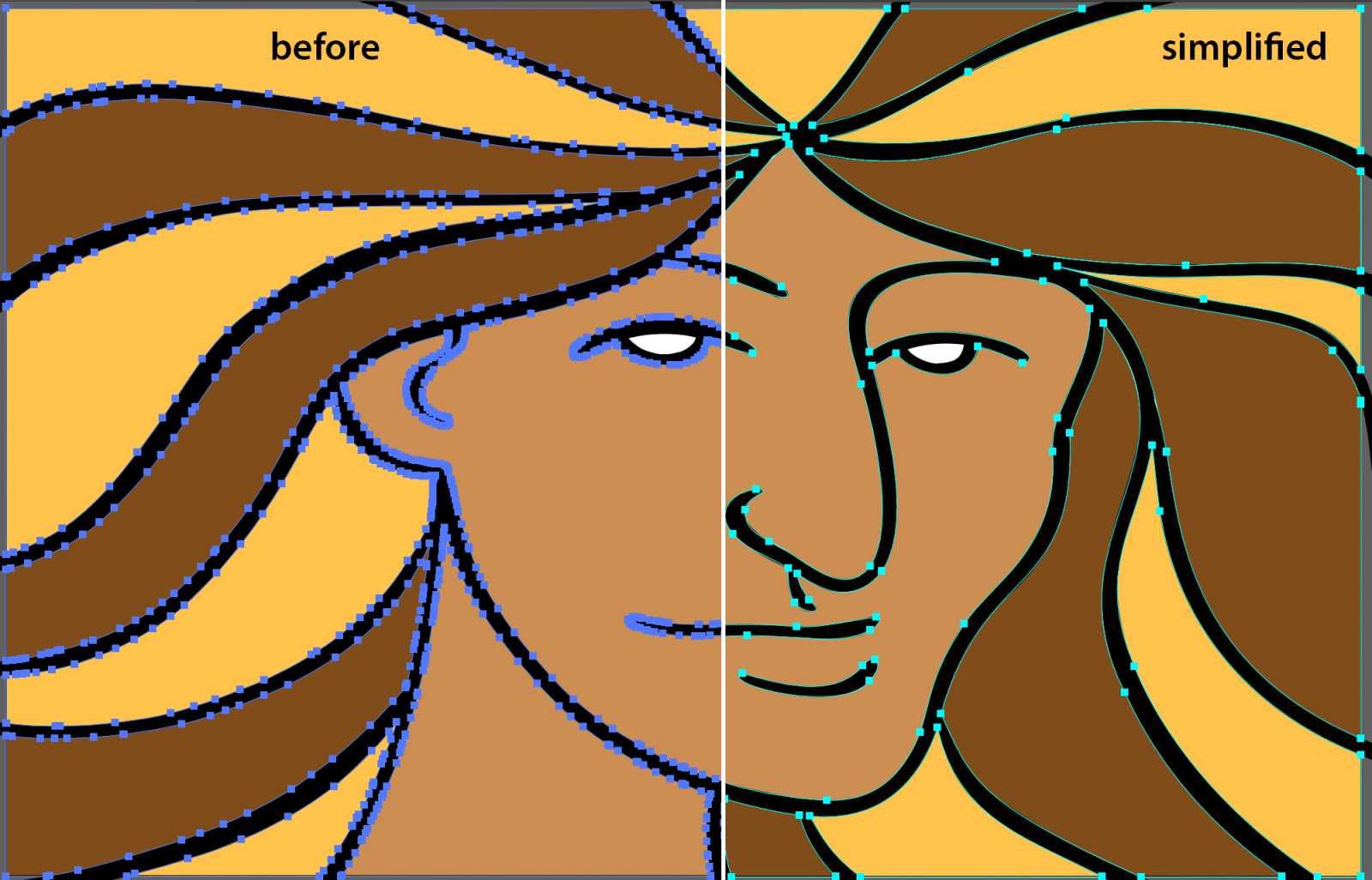 Becomes this one with around one tenth of the anchor points, simply by using Simplify with one or two clicks of the mouse.