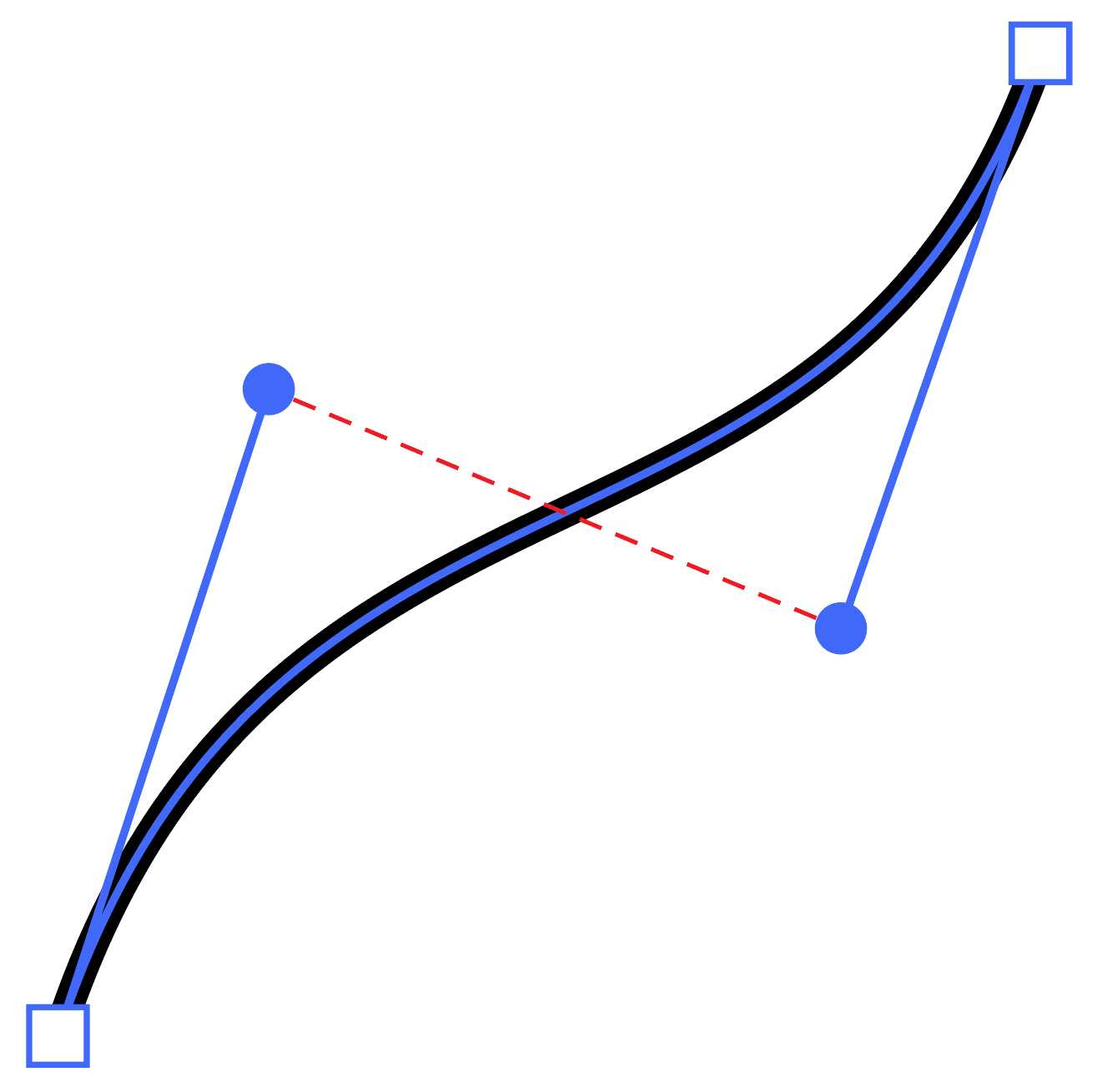 After some mathematical and positional noodling, Deke arrives at the conclusion that if you keep this mystery handle at about 1/3 the total of your curve, your shape is nice and smooth. Even if your shape is like this s-curve: