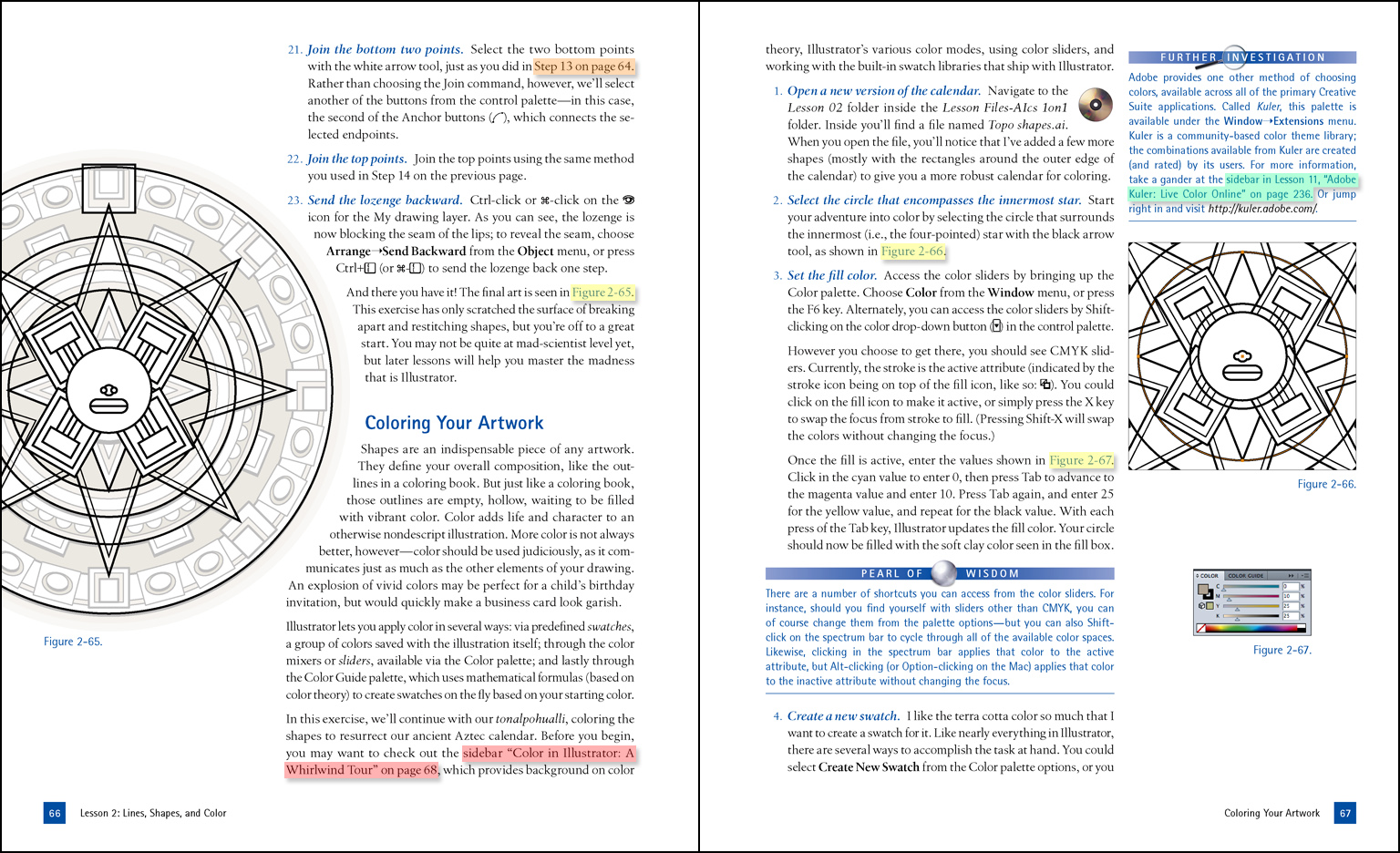 Take the spread below, pulled from Lesson 2 of the Illustrator book. (Click for a larger, somewhat legible version.) In it, I’ve highlighted all of the text that is in need of some cross-reference love.